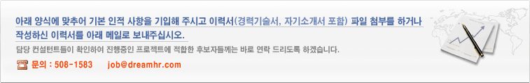 드림HR은 헤드헌팅, 경력컨설팅, 교육 및 각종 인사관련 서비스를 운영하는 동안 서비스 이용자의 개인정보를 계속 보유하며