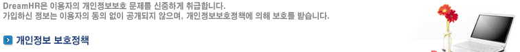 ㈜드림HR(이하 '회사')은 이용자가 회사에 제공하는 개인 정보를 매우 중요하게 취급하고 있으며 "정보통신망 이용촉진 및
